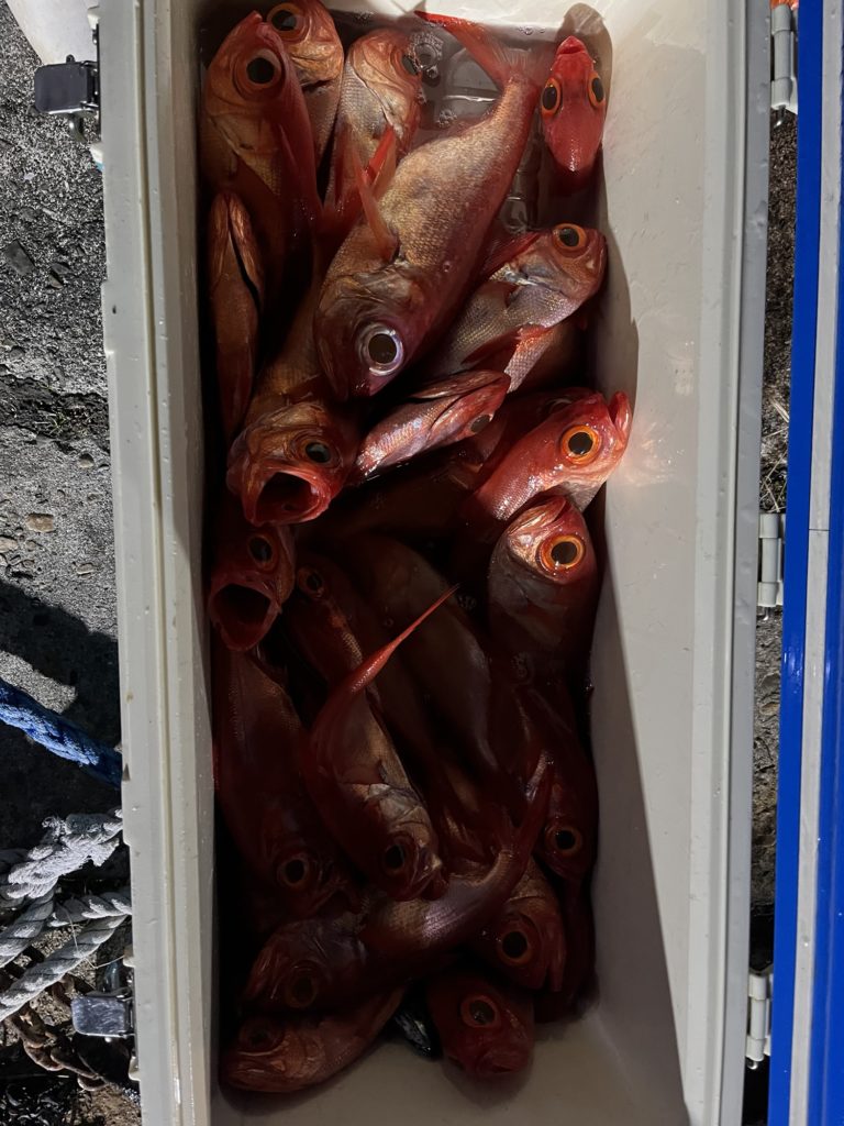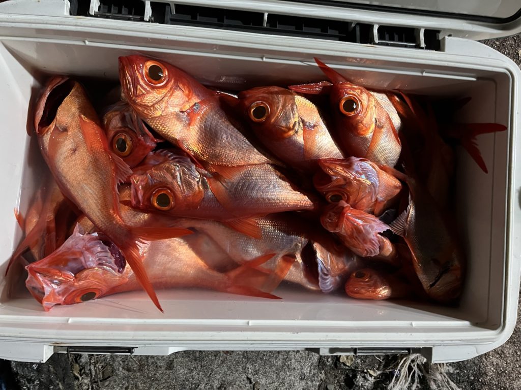昨夜のキンメ、ムツはムツの食い渋く苦戦したがキンメの食いはポツポツ釣れお土産になりました。