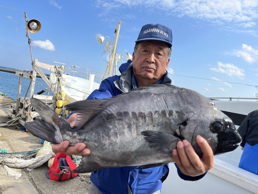 06:00〜07:30までシマアジ狙い小型シマアジ船中5匹、それと3.4キロ1匹、ばらし2匹、アマダイ狙い0匹から3匹大きいので、1.3キロ外道にキダイ、昨夜のキンメの釣果、塩の流れ悪く苦戦したがお土産になりました